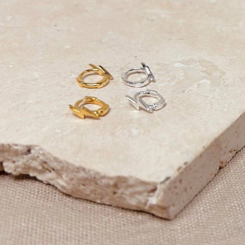 Gold Micro Lightning Bolt Hoops -silver / gold