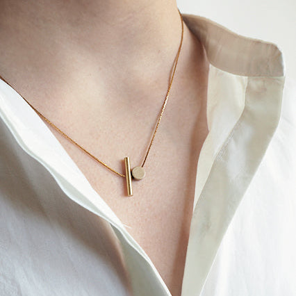 Brass Cylinder + Disc Necklace
