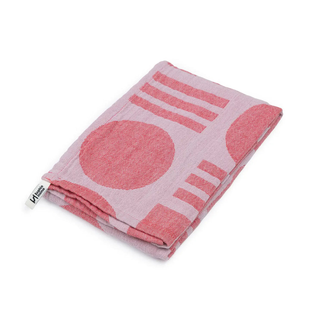 Cotton Tea Towel - Stack The Dishes Pink
